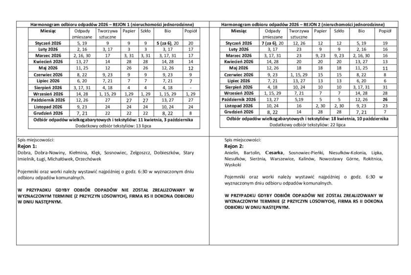 Harmonogram odbioru odpadów 2026